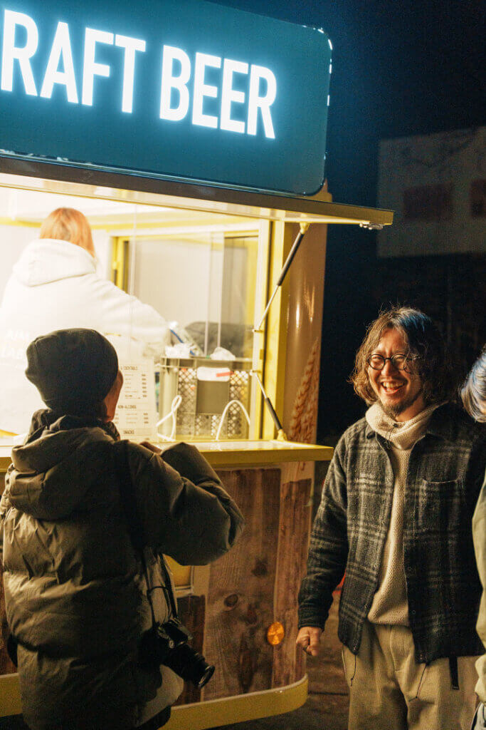 イベント会場では、誰かが必ず写真を撮ります。ビールを手にした瞬間や、友人と笑っている何気ない時間。その背景に、トレーラーが写り込みます。